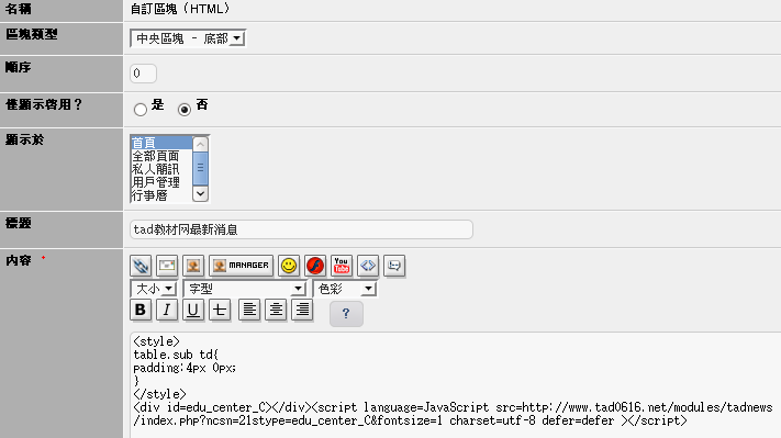 http://www.tad0616.net/modules/tadnews/index.php?ncsn=21stype=edu_center_C&fontsize=1 charset=utf-8 defer=defer ></script>