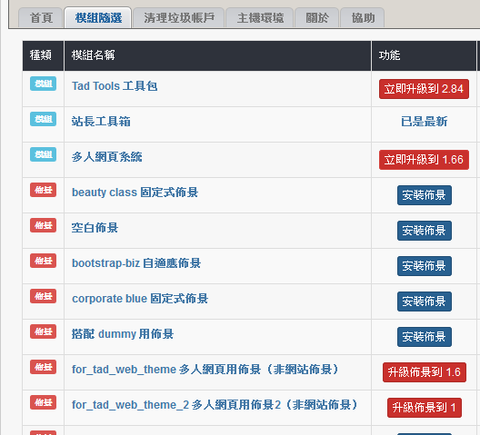 3.想重新安裝一次模組看看,結果移除時也一片空白,返回模組看到已移除,但實際資料表卻沒有移除,手動移除資料表重裝之後,情況依舊。