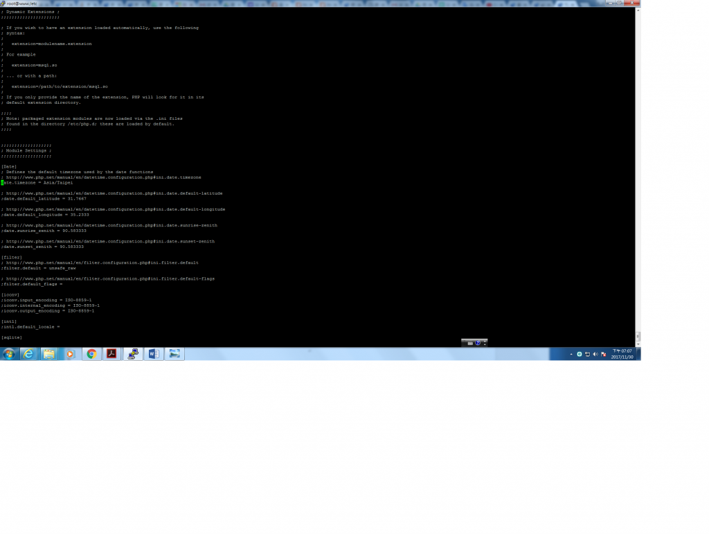 /etc/php.ini 的php.ini內時區我已加上去Asia/Taipei了