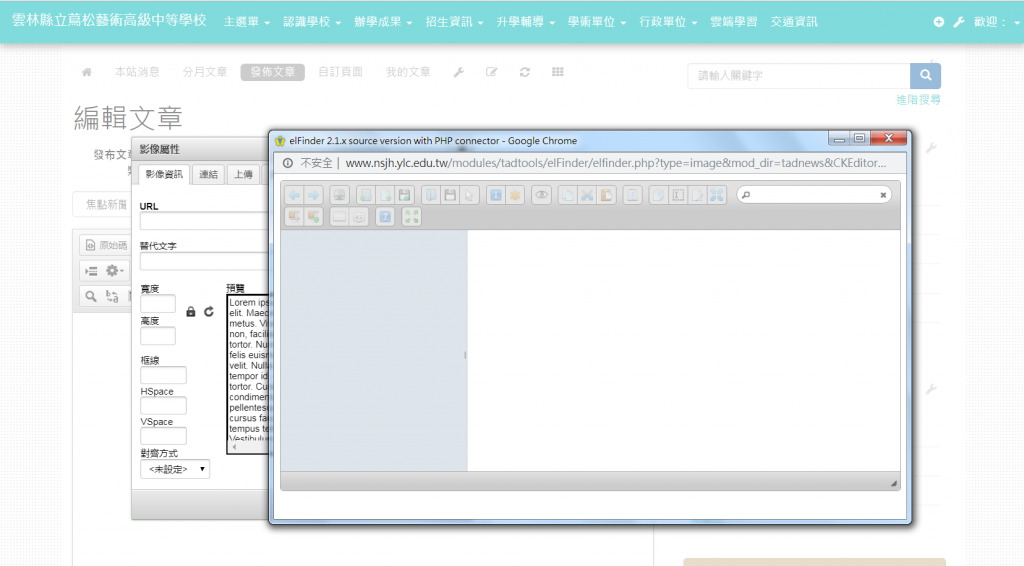 我改用 IE 就可以用您說的 第一個頁籤「影像資訊」中的「瀏覽伺服器」來上傳圖片 了,