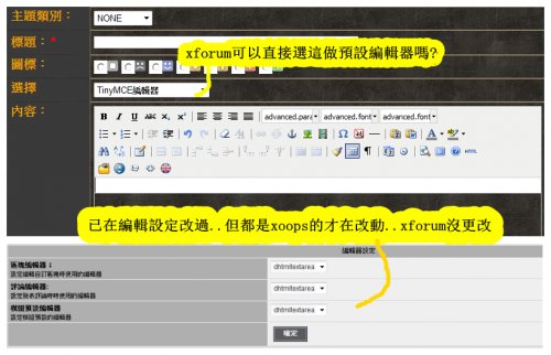 想請問改動了xoops系統基本設定的預設編輯器後..xforum完全沒改動過...要怎樣才可設定xforum的預設編輯器!