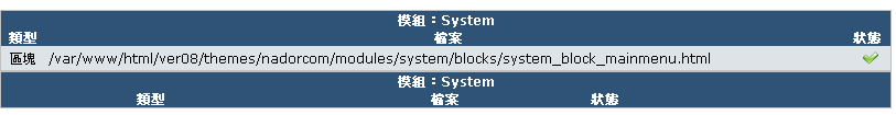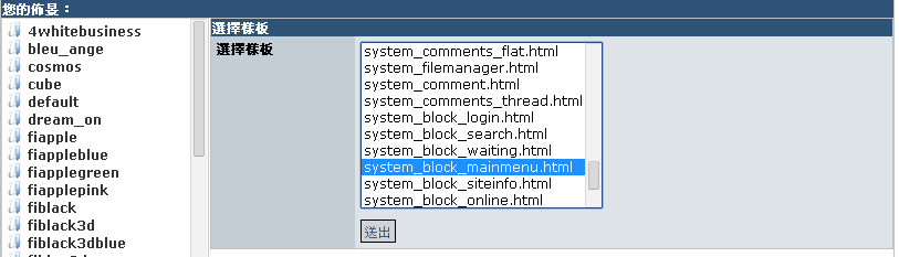 已經在佈景/modules/system/blocks/system_block_mainmenu.html裏新增了一個項目