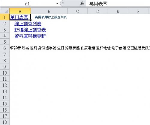 2.在匯出excel檔後,顯示不正常,"項目與所填資料"全部只變成一行,其餘空白,連表格也沒有,