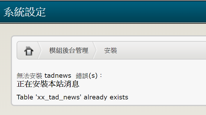 因為資料表已經存在(可能是之前有不正常移除吧)