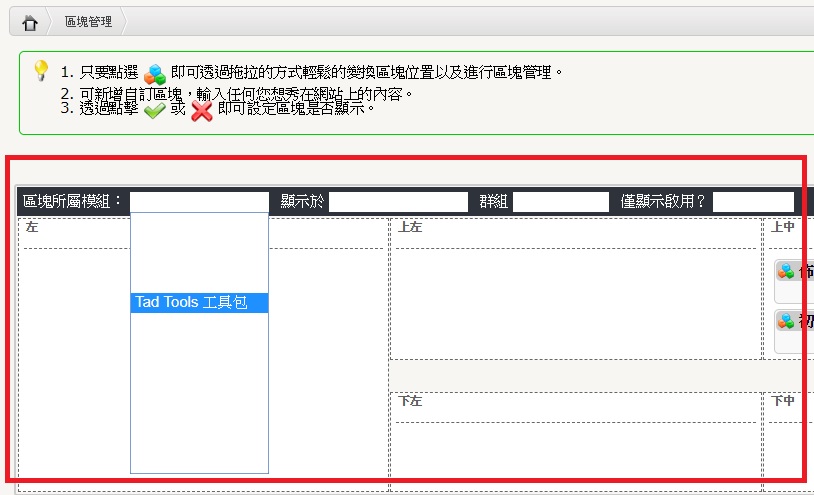 您好,昨日校網線上更新後點選區塊管理,顯示畫面出現問題,如附檔所示,唯有滑鼠移動時文字才會出現,請問是出了什麼問題嗎?
