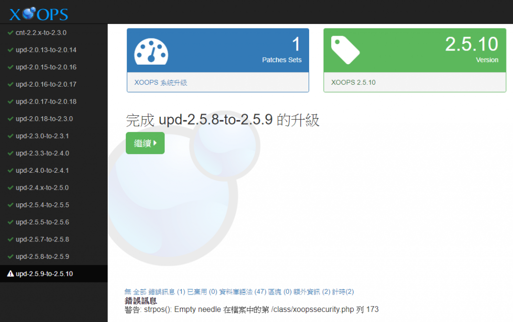 警告: strpos(): Empty needle 在檔案中的第 /class/xoopssecurity.php 列 173