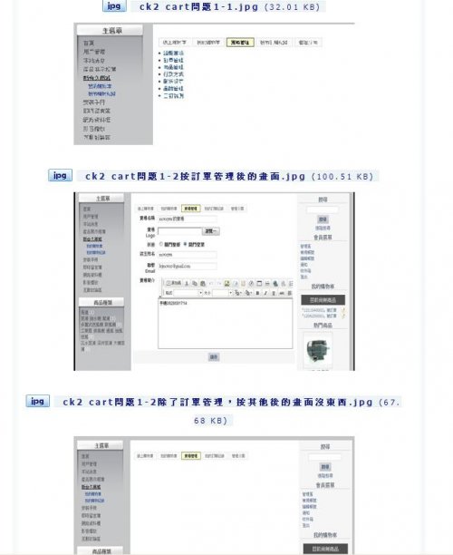 ck2 cart 購物車模組安裝後賣場管理下各選單出現空白