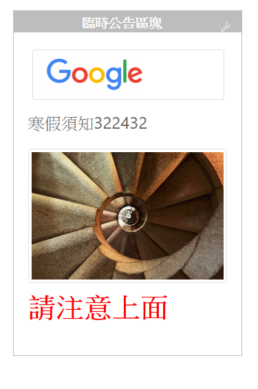 jill_notice 臨時公告區塊 1.2 (2020-03-13 11:39:07 起被下載 107 次)