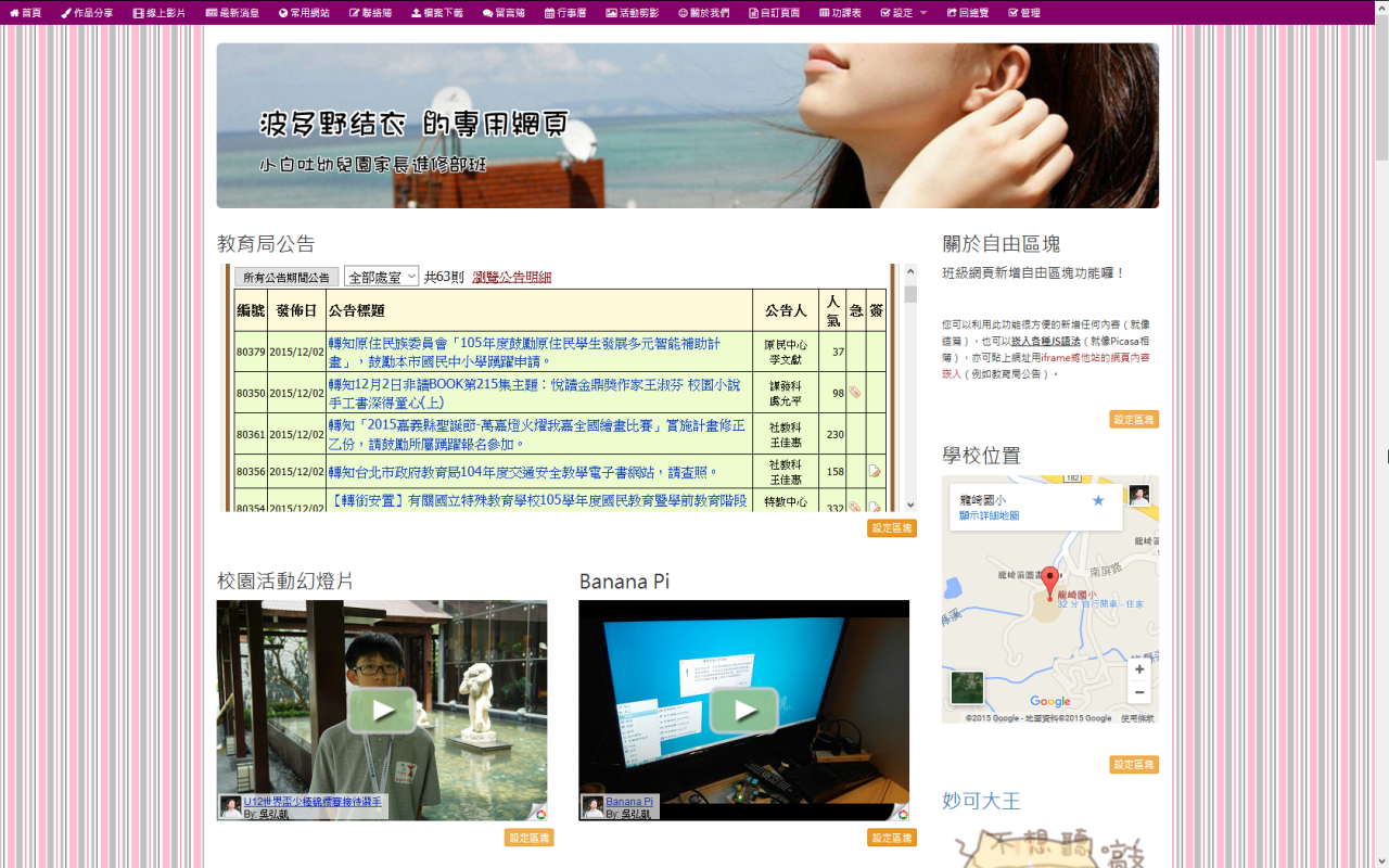 這個模組折磨了我好幾年了,因為陸陸續續一直有需多網管老師建議是否可以寫個班級網頁模組給學校使用,如此便可以擺脫優學網。這是一個有趣的主意, 但架構不小,而且總是被其他工作打斷,此外,也想不出一個比較妥善的架構,因此,一拖就是好幾年。這幾年間,也陸續寫過幾次,但不是寫到無法善後,就是覺 得日後維護不易而作罷!這期間至少重寫了三次以上!