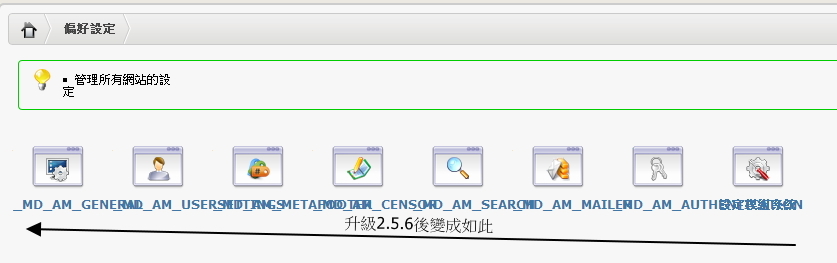布景管理新增主選單儲存後,顯示問號。請老師指導一下。