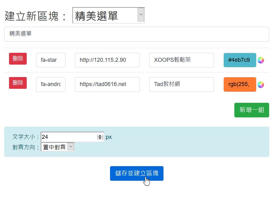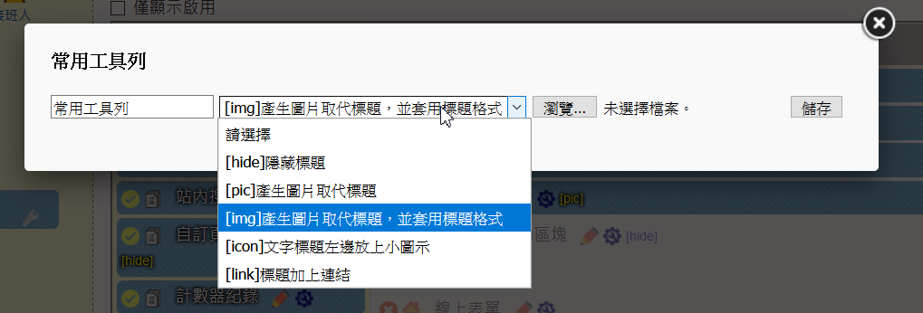 - 自訂區塊列表改以實際區塊名稱、位置及排序來顯示