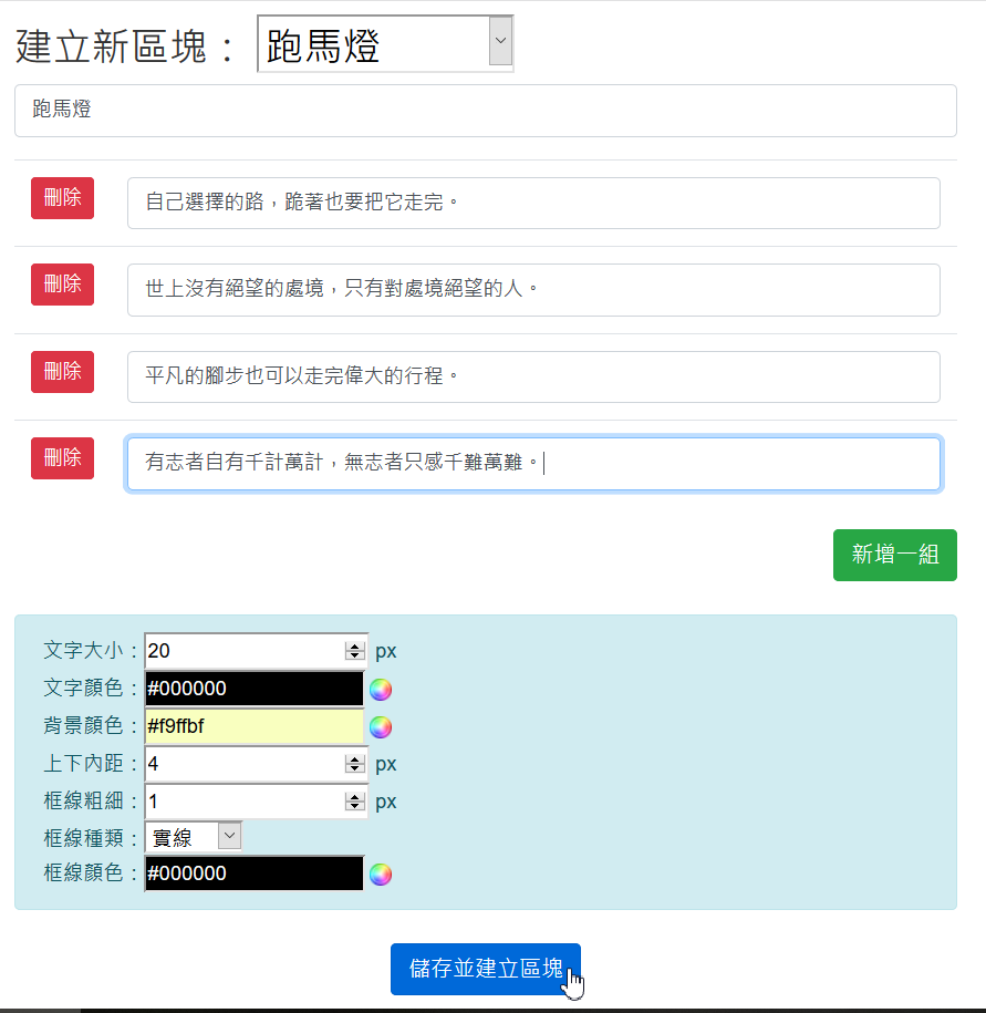 區塊一般只有管理員才能新增,想要讓一般行政人員也可以自行新增區塊的話,勢必得開放管理權限給行政人員,但如此又會造成管理上的困難。此外,一些自訂區塊可能需要上傳圖片、檔案,利用官方的自訂區塊頁面極為不便又不直覺,因此,開發此模組來解決以上問題!