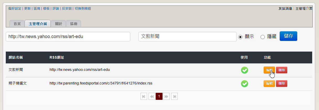 1. 將新模組解壓,把tad_rss目錄上傳到modules下。