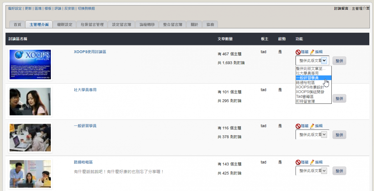 - 完成討論區的快速整併功能