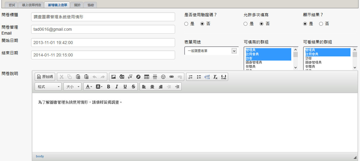 - 將管理界面移至前台,並可在後台指定可編寫表單的群組