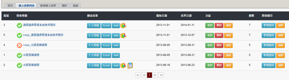 - 複製表單的時候題目是否顯示沒有複製到(還有表單多出來的欄位也是)
