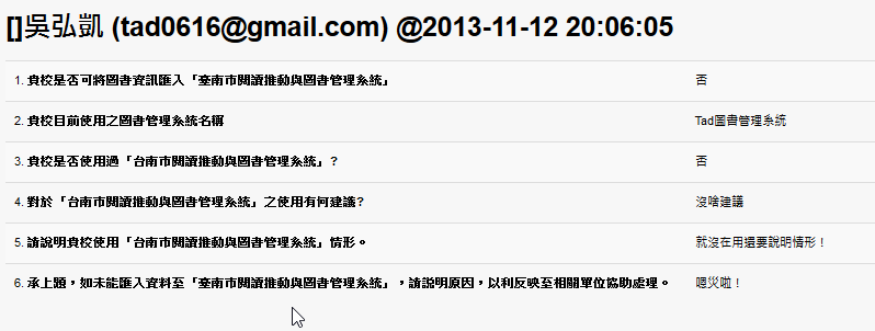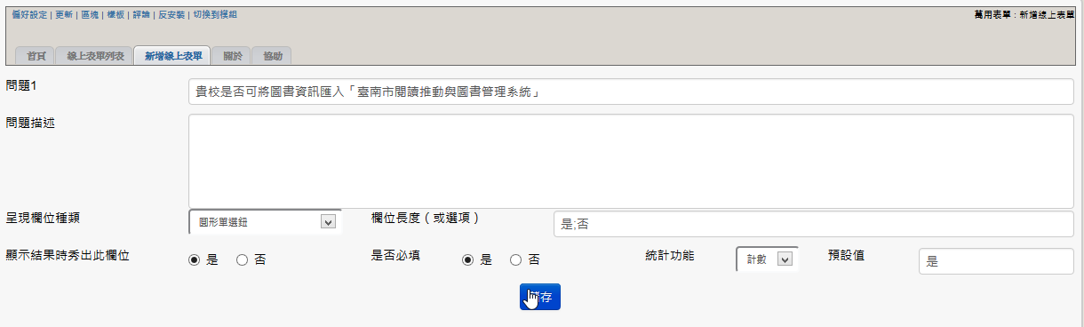 - 修正部份填報在未有人填時,觀看結果會出現空白的情形。